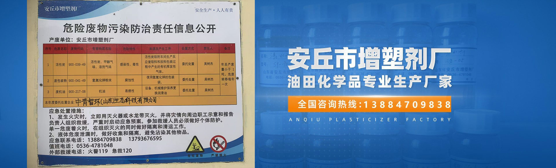 安丘市增塑劑廠始建于1984年,坐落在“全國重點鎮(zhèn)”安丘市景芝鎮(zhèn),山東省高新技術企業(yè),“山東制造”品牌認定企業(yè)。主要從事油田化學品的研制、生產(chǎn)與銷售,是破乳劑、瀝青抑制劑等油田化學品專業(yè)生產(chǎn)廠家。公司先后與中國石油大學、山東理工大學和濱州學院合作,建立了“油田化學聯(lián)合研究所”、“水處理聯(lián)合研究所”、“長期教學基地”和“大學生創(chuàng)新創(chuàng)業(yè)實踐基地”。公司已通過ISO9001質量體系認證、ISO14001環(huán)境管理體系認證和ISO45001職業(yè)健康安全管理體系認證,取得“安全生產(chǎn)標準化證書”。公司配套產(chǎn)品生產(chǎn)線10條,年綜合生產(chǎn)能力20000噸以上。 主要產(chǎn)品有原油破乳劑、ALF系列瀝青抑制劑、清水劑、AQ系列污水處理劑、YE系列石蠟分散劑、AG系列稠油降粘劑、AN系列降凝...